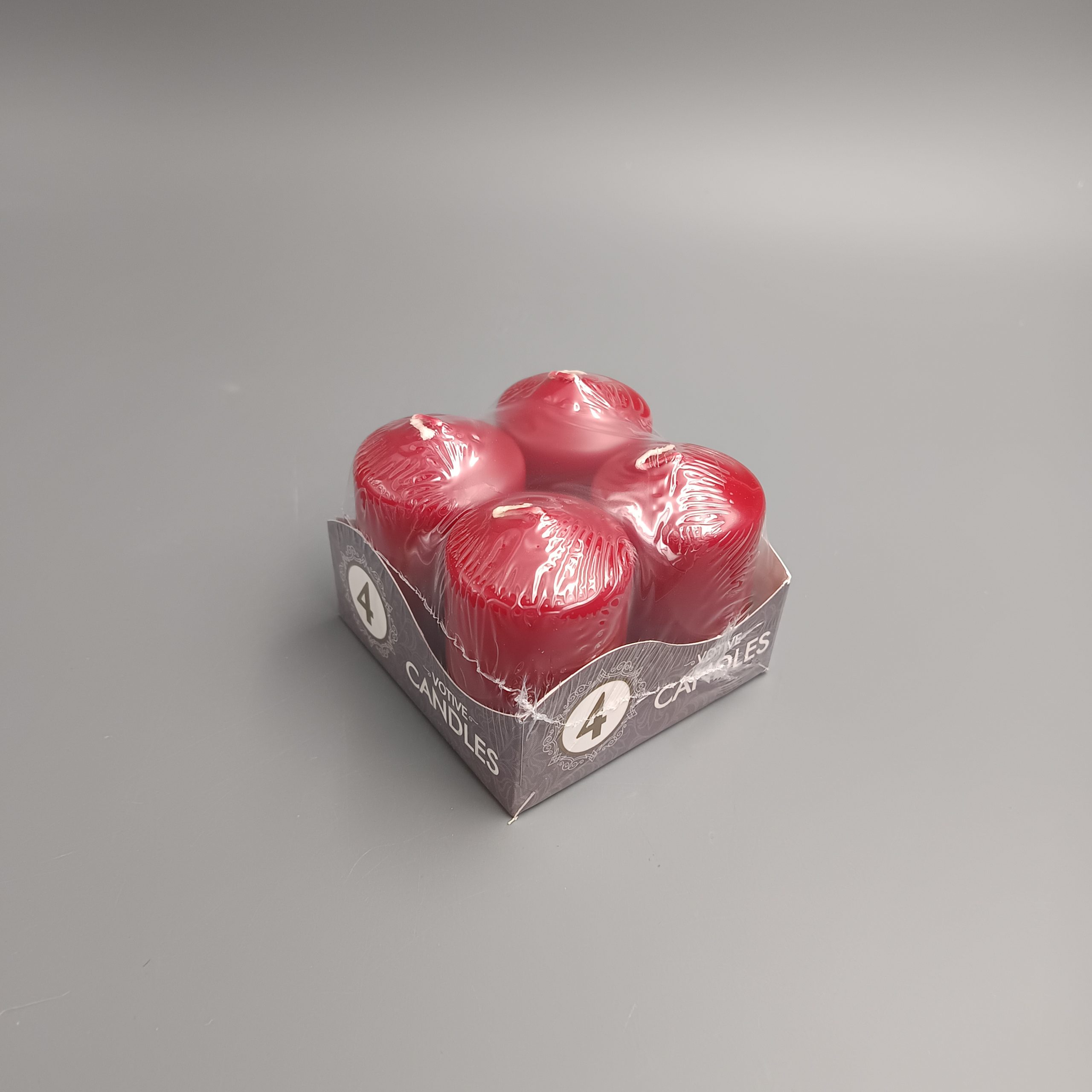 Adventi gyertya, csomagban. Mérete 3,5×5,5cm. Dekorációs alapanyag. A csomag 4 darab gyertyát tartalmaz. Bordó színű. Termékkód: advszl-b