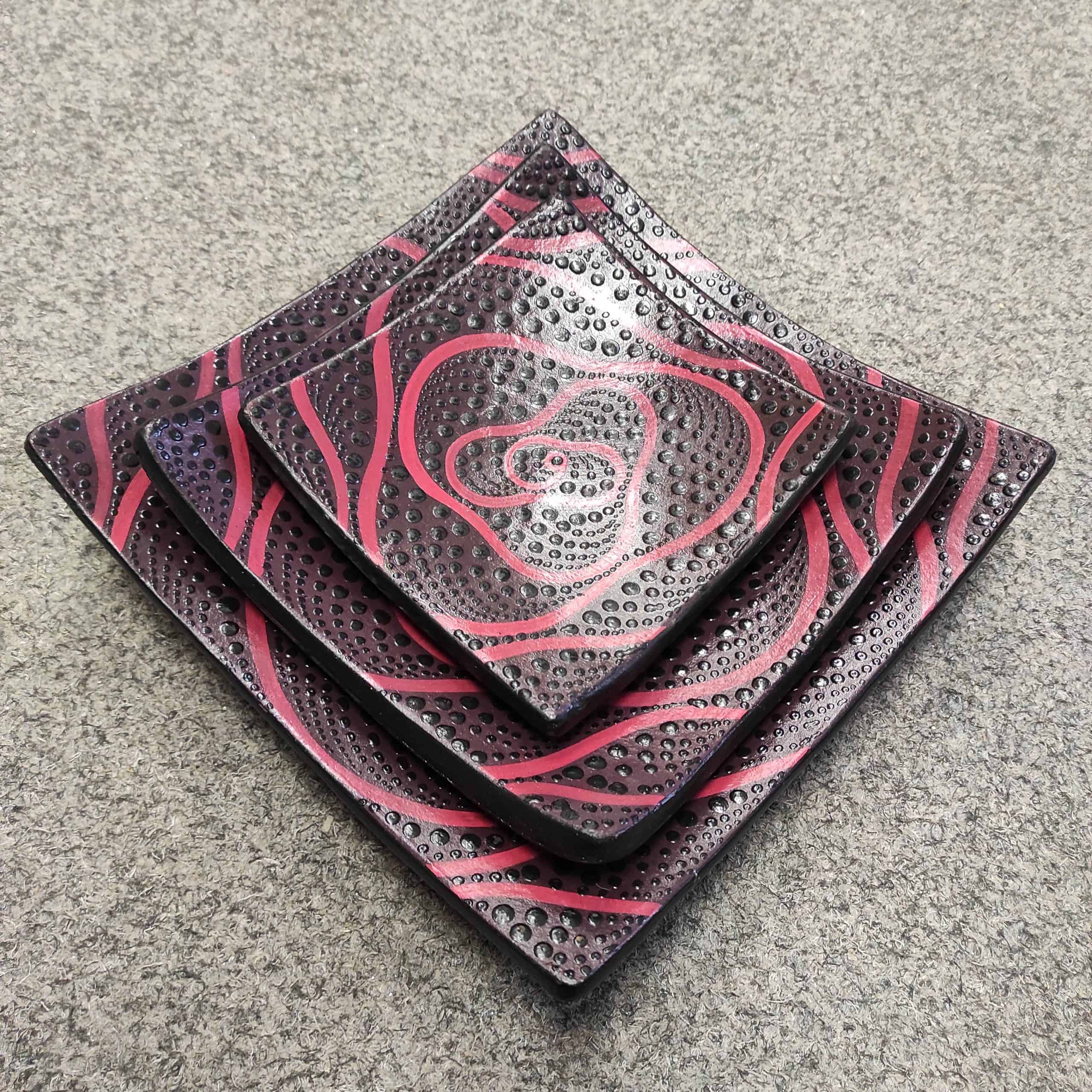 Kerámia tál aboriginal mintás közép bordó 15x15cm