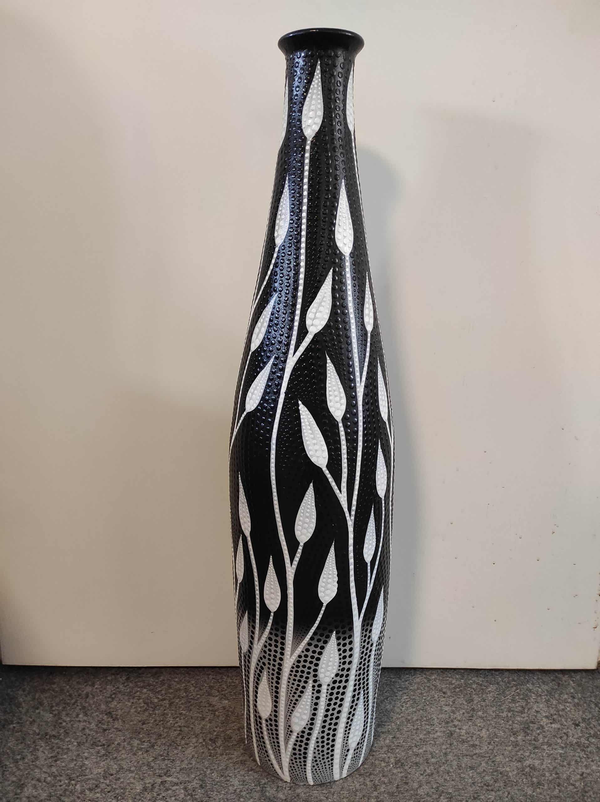 Kerámia váza aboriginal mintás hosszú nyakú 80cm fek.csúcs. leveles