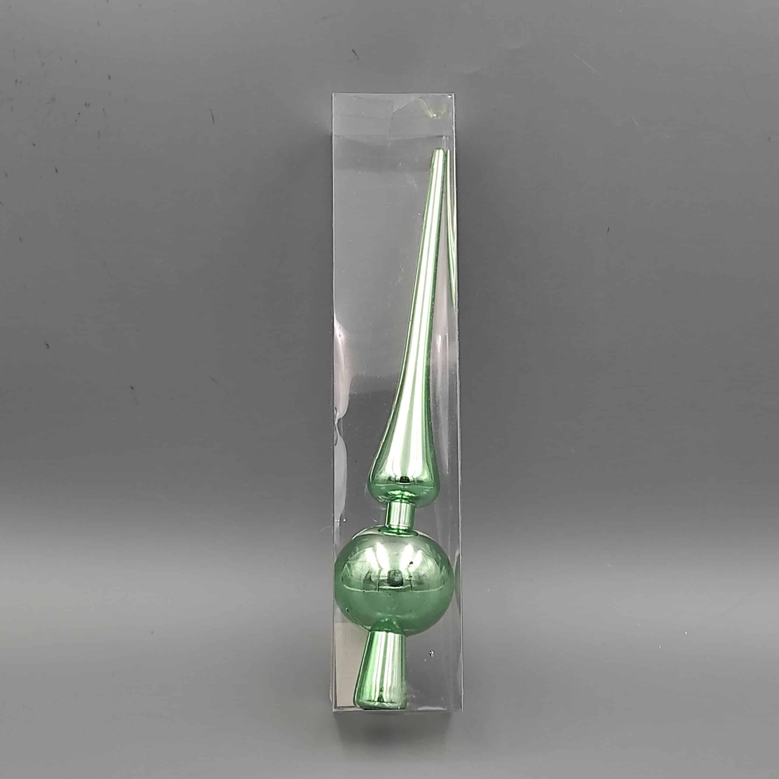 Csúcsdísz műanyag, nem törékeny. A karácsonyfa csúcsára helyezhető dísz. Mérete 29cm. Fényes, zöld színű. Termékkód: js171192