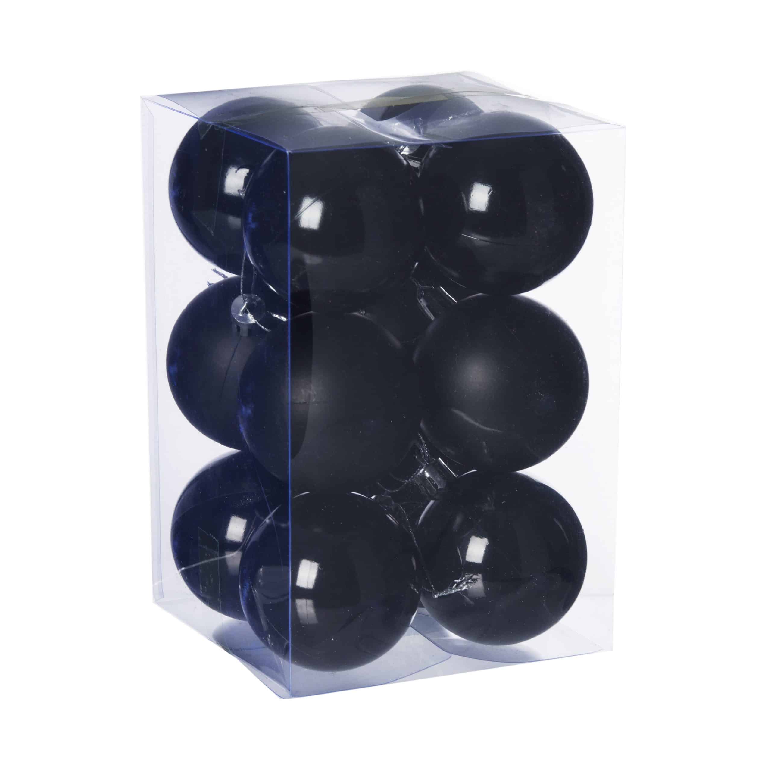 Műanyag gömb, akasztóval. Fényes, gyöngyház és matt. A gömb átmérője 6cm. A doboz 12 darab gömböt tartalmaz. Fekete színű. Termékkód: dd51231