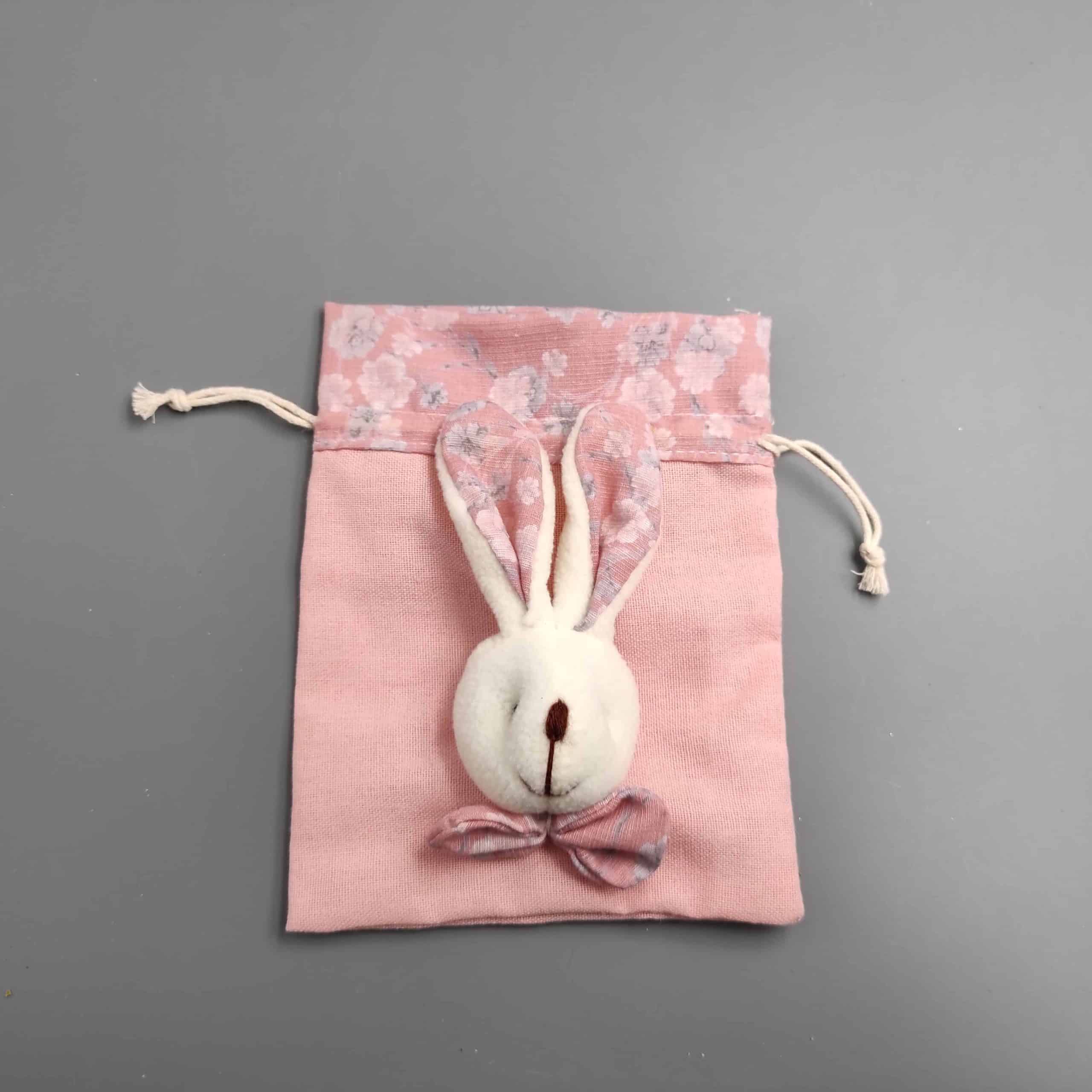 Tasak nyúllal, virágos, textil 14x17cm rózsa
