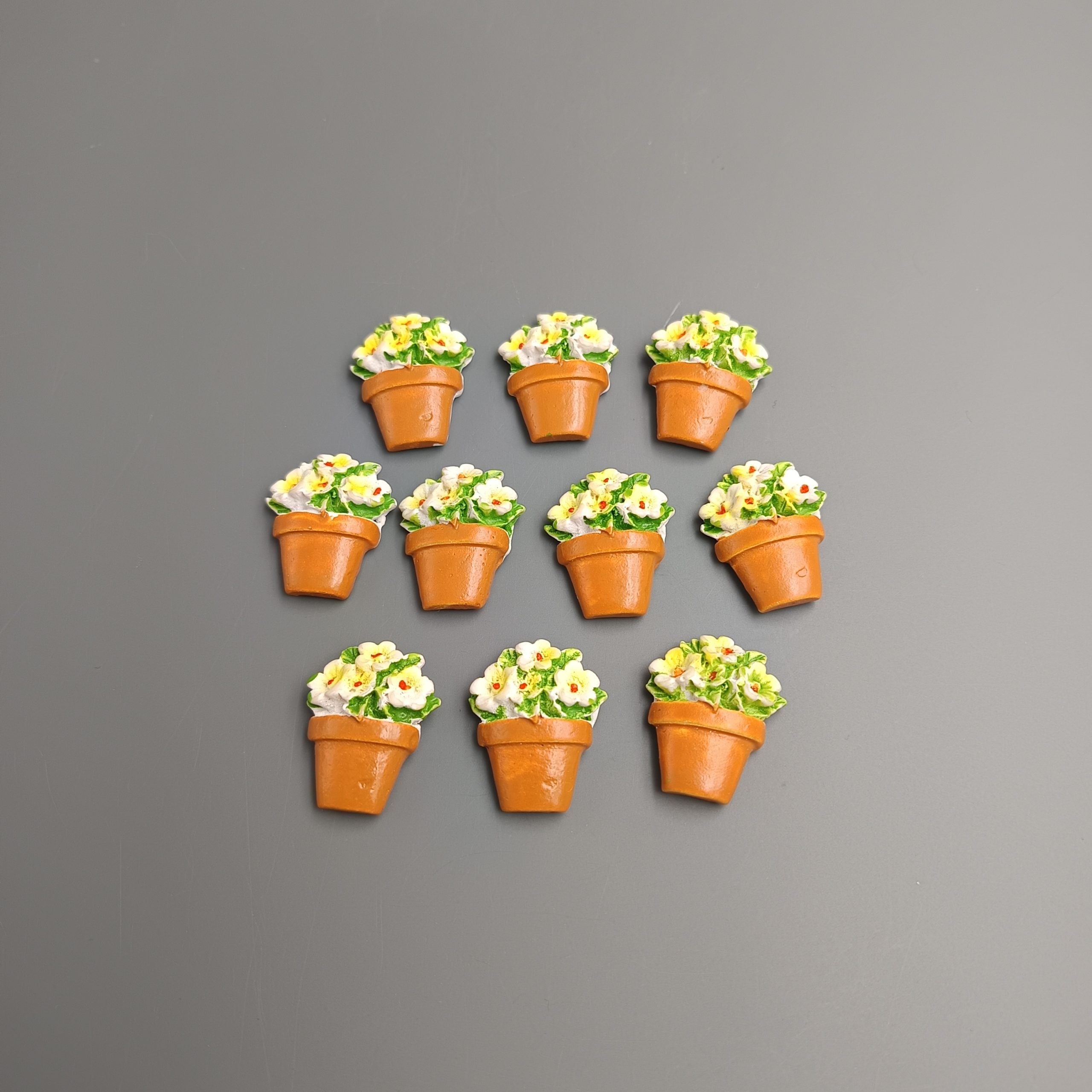 Öntapadós cserepes virág, műanyagból. Mérete 0,5×2,5×2,8cm. A csomag 10 darab virágot tartalmaz. Barna, sárga és zöld színű. Termékkód: dd24010