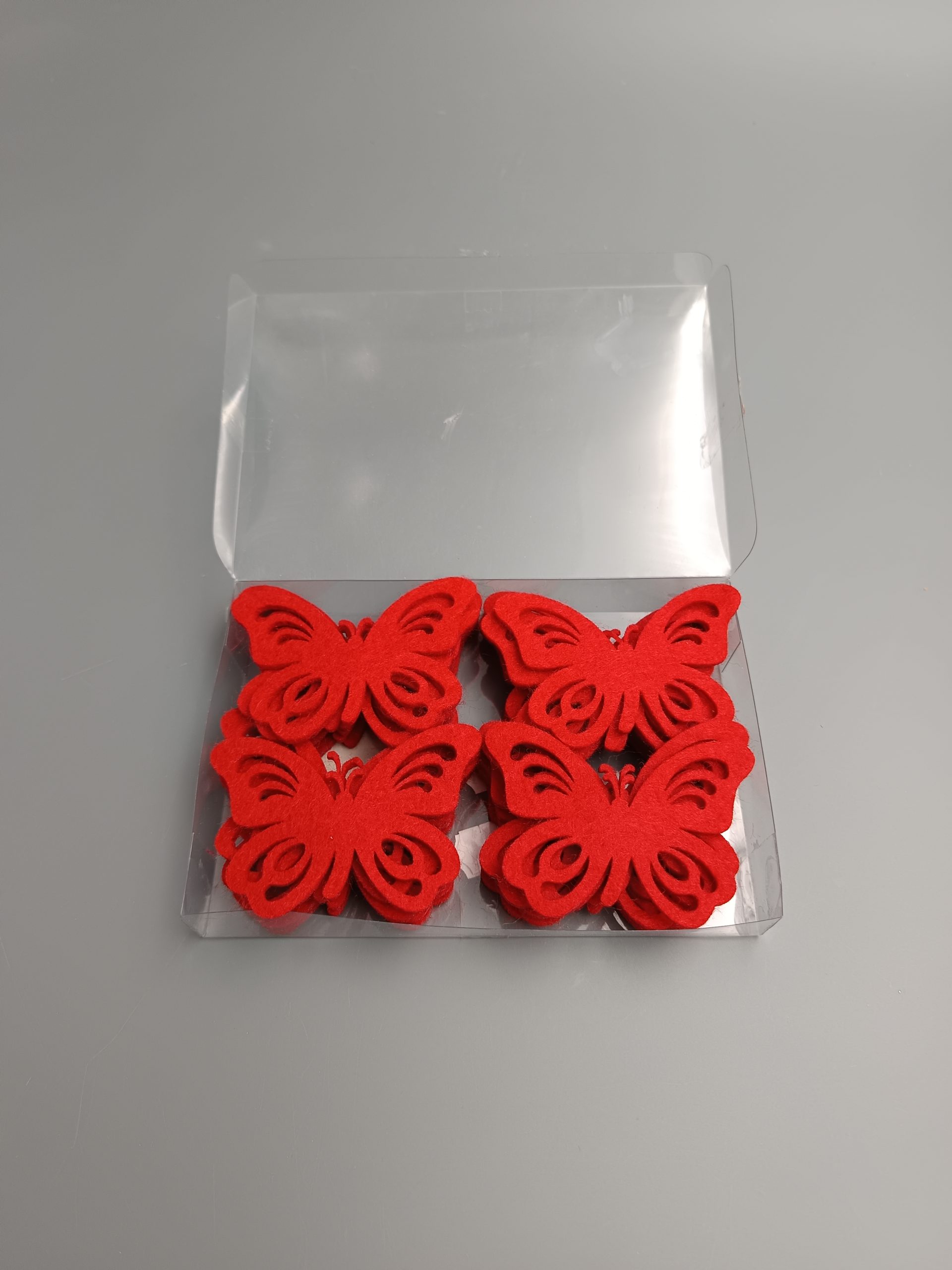 Pillangó, ragasztós, filc, 7cm, piros, 24db