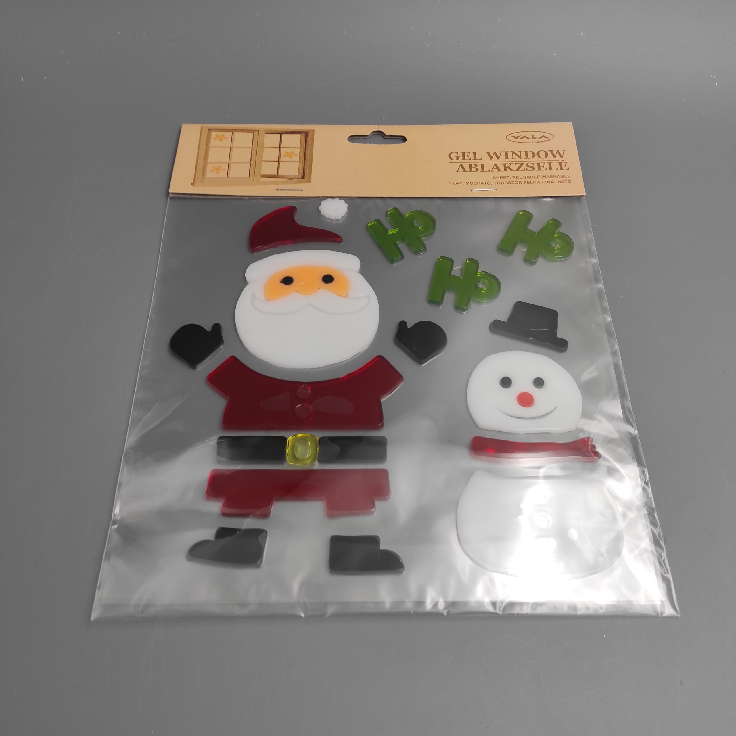 Zselés ablak matrica. Mikulás és hóember mintával. Tiszta ablakra, többször felhelyezhető. Mérete 20x25cm. Színes. Termékkód: qx312603